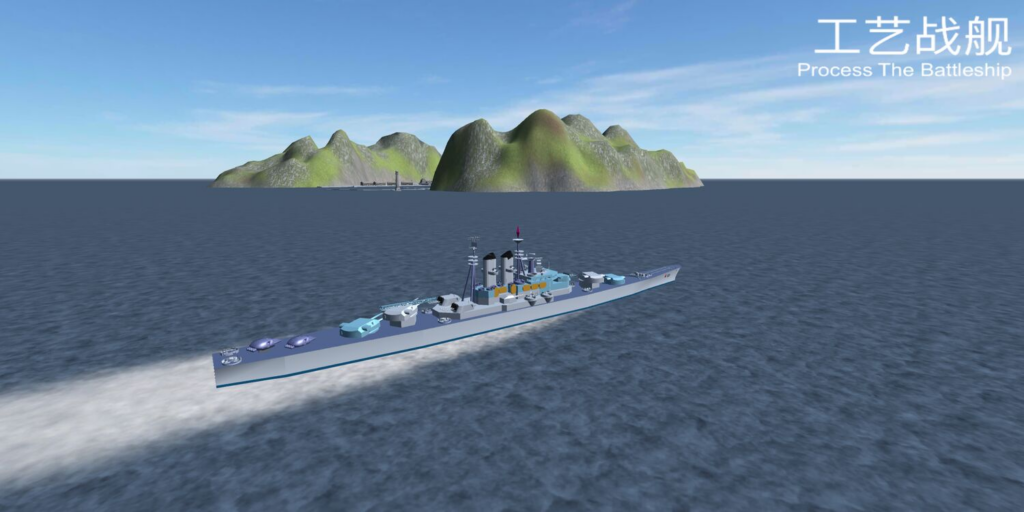 舰桥直接拿了烨城的,为了放更多副炮对后舰桥进行了修改。这时已经出了轮机,原来的烟囱也被拆除,换成了两组 三个/四个机库+三个驱逐烟+装甲板一组的轮机,轮机核心区正好和机库重合受到防护,同时机库在浮力稀少的地方,受到攻击时不会给船体添加高额伤害