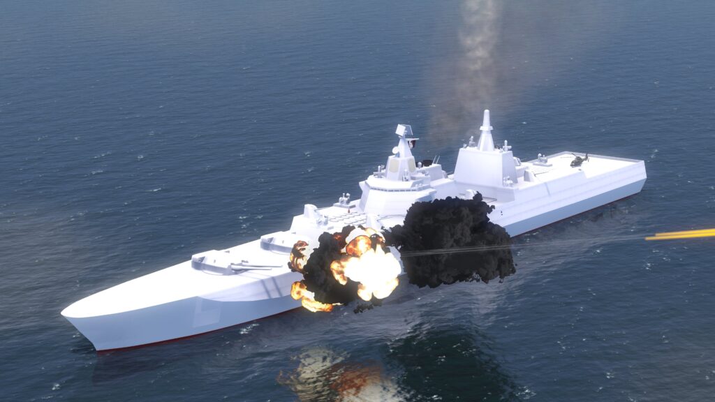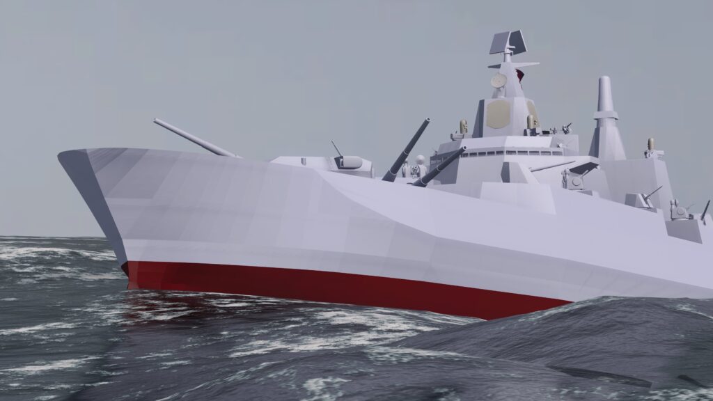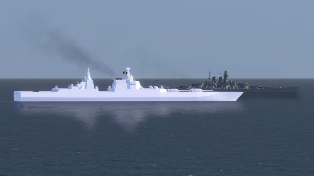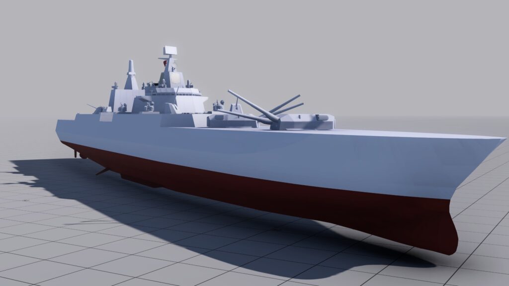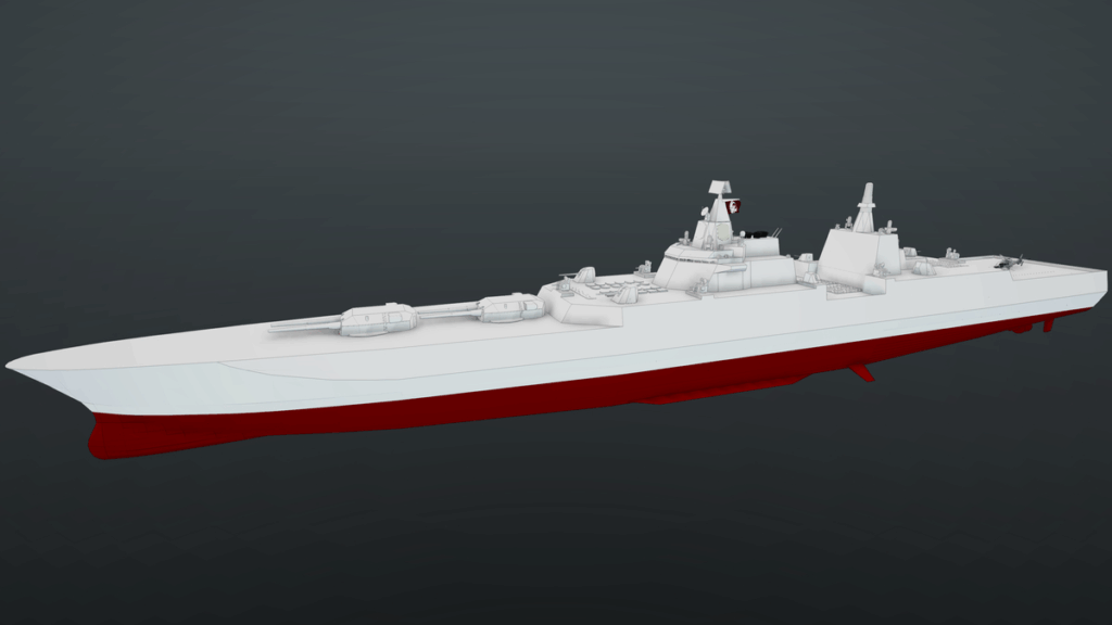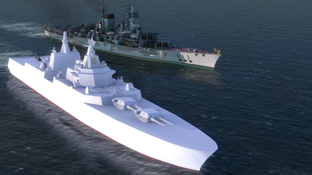 忒伊娅级作为未来多用途海军平台,融合隐身设计、模块化舰体与混合动力系统,兼具防空、反舰、对地打击与两栖支援能力,航速达31节,配备宙斯盾雷达与分层防御体系,可搭载航空设施与井甲板,适应复杂战场环境。主炮虽为个人偏好选用俾斯麦级38厘米舰炮,实则作为精确清除关键目标的后备火力,不追求高射界优先,而是以整体线条与纵深防御优化生存性,规避超射布局以提升抗打击能力。其名称源自希腊神话中的光辉泰坦女神,象征海军力量迈向智能化、多能化的新纪元,既是舰队核心,亦是远程打击与两栖作战的协同中枢。